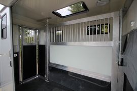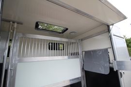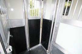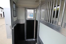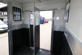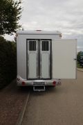 Am Heck befindet sich eine große Außentüre, sowie zwei separate Innentüren mit Gitter, durch die man zu jedem Pferd separat gelangen kann.