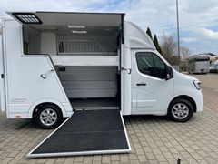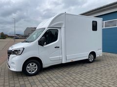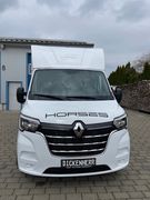 Renault Master 165 PS EURO 6 Motor, 3 Sitzplätze, Schaltgetriebe, Handyladestation, Navi, Kunstledersitzbezüge, Fahrer- und Beifahrer Airbag, DAB+ Radio mit Bluetooth Freisprechanlage, Multifunktionslenkrad, manuelle Klima-Anlage, Bildschirm für Videoüberwachung Pferdebereich und Rückfahrkamera, Temperaturüberwachung Pferdeabteil, Lüfterregelung Pferdeabteil