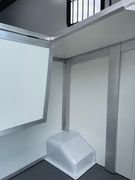 Für Luft und Licht im Pferdeabteil sorgen ein Elektrolüfter, 2 Dachluken und 2 Fallfenster an den Pferdköpfen. Über unser Kamerasystem überwachen Sie während der Fahrt die Pferde und beim Rückwärtsfahren den Heckbereich. LED-Leuchten weiß und blau sorgen für die richtige Beleuchtung im Truck bei Tag und Nacht.