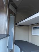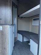 - Wohnabteil mit Dusche, 2 Sitzplätzen und Tisch zum Stockbett umbaubar, Küchenzeile mit Spüle, Microwelle und Kühlschrank, viele Staumöglichkeiten.